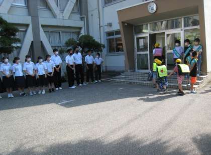 今日は「あいさつ運動〜小中学生といっしょ〜」の2日目。柳町小学校の児童玄関前で、小学生とともに、さわやかなあいさつを交わしました。