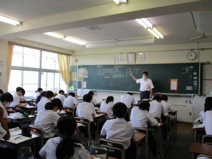 3年生の授業の様子を紹介します。 【写真上:社会】 【写真中:社会】 【写真下:数学】