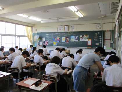 3年生の授業の様子を紹介します。 【写真上:美術】 【写真中:道徳】 【写真下:数学】