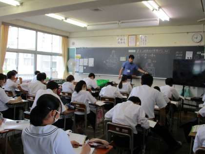 3年生の授業の様子を紹介します。 【写真上:国語】 【写真中:理科】 【写真下:数学】