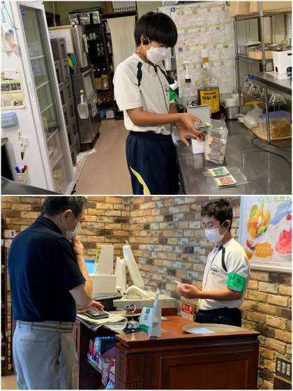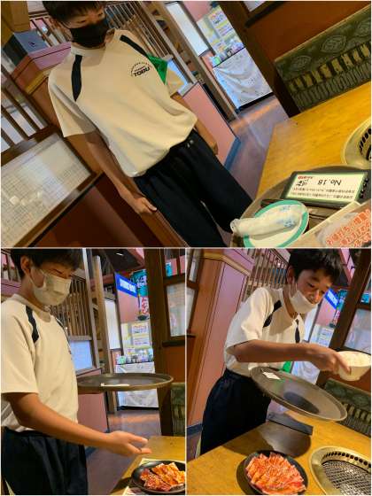 12日(水)「社会に学ぶ『14歳の挑戦』」その4 公開日 2023/07/13 更新日 2023/07/13 14歳の挑戦 本日は、「社会に学ぶ『14歳の挑戦』」の2日目でした。活動の様子を紹介します。 【写真上:そば処大庵】 【写真中:ガスト】 【写真下:焼き肉のバーンズ】