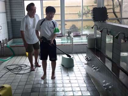 13日(木) 「社会に学ぶ『14歳の挑戦』」その8 公開日 2023/07/13 更新日 2023/07/13 2学年 本日は,「社会に学ぶ『14歳の挑戦』」の最終日でした。活動の様子を紹介します。 【写真上:Ships EEL】 【写真中:スギ薬局 西長江店】 【写真下:入舟湯】