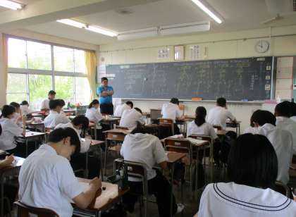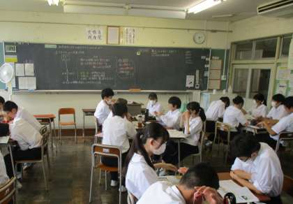 3年生の授業の様子を紹介します。 【写真上:数学】 【写真中:社会】 【写真下:数学】