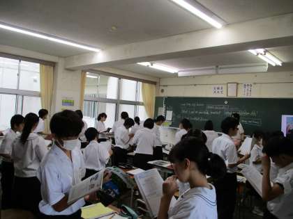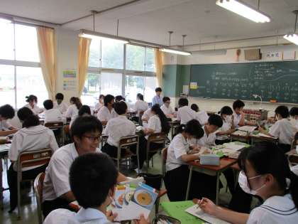 1年生の授業の様子を紹介します。 【写真上:家庭科】 【写真中:英語】 【写真下:理科】
