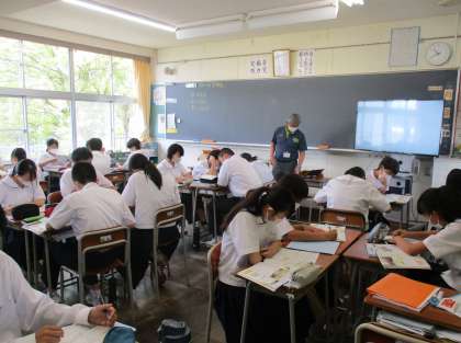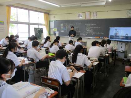 2年生の授業の様子を紹介します。 【写真上:英語】 【写真中:国語】 【写真下:社会】