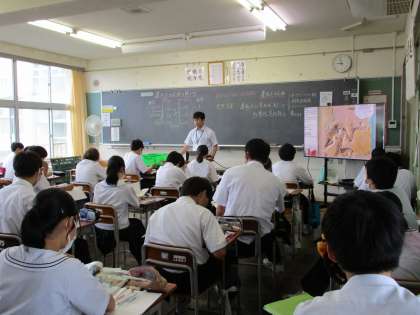 3年生の授業の様子を紹介します。 【写真上:国語】 【写真中:理科】 【写真下:数学】