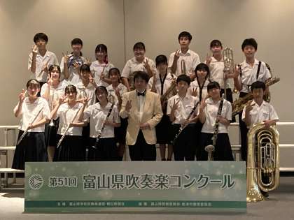 7月23日(日)第51回富山県吹奏楽コンクール 公開日 2023/07/23 更新日 2023/07/23 部活動の様子 吹奏楽部は本日、新川文化ホールで行われた 第51回富山県吹奏楽コンクールに出場しました。 演奏順は1番で、10:00から演奏しました。 審査結果は、午後発表されます。 今までの練習の成果を発揮し、ステージで 素晴らしい演奏を披露することができました。