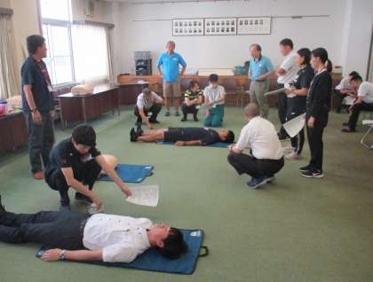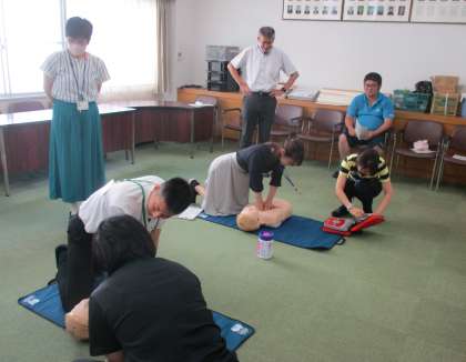 本日の午後、教職員の研修として救命救急講習会を実施しました。