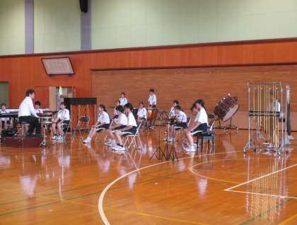 いよいよ明日に迫った中部日本吹奏楽コンクール富山県大会に向けて、運動部が活動を終えた灼熱の体育館で、打楽器を中心に演奏の確認をしました。
