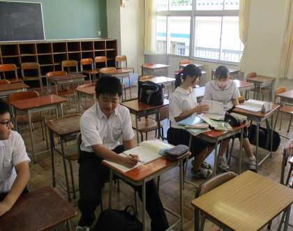 9日(水)3年 質問教室 公開日 2023/08/09 更新日 2023/08/09 3学年 3年生は、本日2回目の質問教室を実施しました。担当した先生に質問したり、アドバイスをもらったりしながら、各自で持ち寄った課題に取り組みました。 次回8月23日(水)が、最終の質問教室になります。