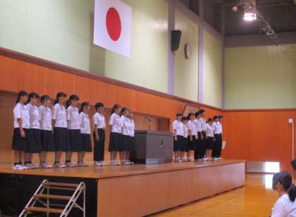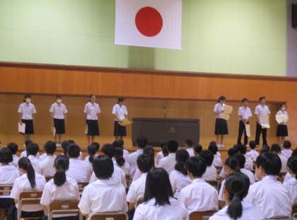 28日(月)受賞報告会 公開日 2023/08/28 更新日 2023/08/28 東部中学校の様子 始業式に先立って、受賞報告会を行いました。夏季休業中に行われた水泳の各種大会や吹奏楽コンクールの受賞について、全校に披露されました。