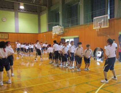 2限の種目練習は、体育館で大縄跳びの練習を行いました。