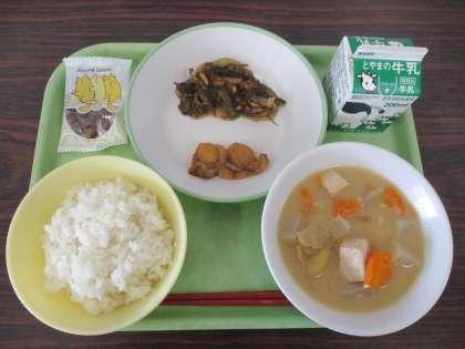 1日(金) きょうの給食 公開日 2023/09/01 更新日 2023/09/01 今日の給食 今日の給食を紹介します。上左から 黒糖大豆 平皿(もずくのチャプチェ、ほたての香味焼き) 牛乳 ごまけんちん ごはん カリカリと香ばしく、シンプルな味わいの「黒糖大豆」。大豆は他のナッツ類と比べて油脂分が少なく、あっさりとしていてヘルシーです。