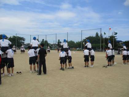 本日2〜4限、明後日の体育大会本番に向けて、予行を行いました。 【写真:騎馬戦】