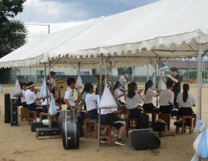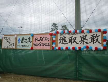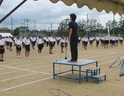 昨日行った第77回体育大会の前半の様子を紹介します。 【写真:スローガン、開会式】