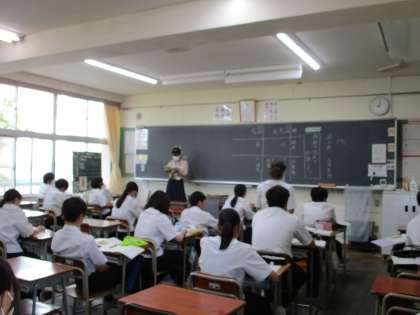 2年生の授業の様子を紹介します。 【写真上:英語】 【写真中:国語】 【写真下:社会】
