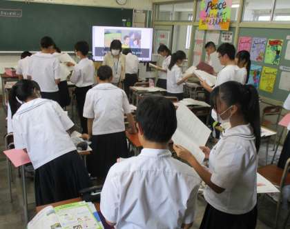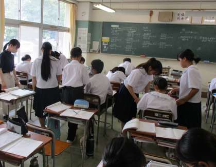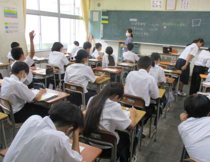 1年生の授業の様子を紹介します。 【写真上:英語】 【写真中:数学】 【写真下:書写】
