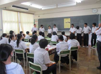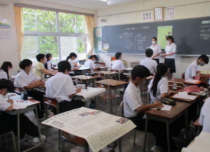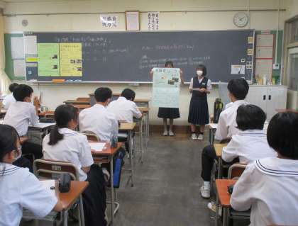 20日(水)学びの様子【2年:総合】 公開日 2023/09/20 更新日 2023/09/20 2学年 本日5・6限の総合的な学習の時間に、2年生は「社会に学ぶ『14歳の挑戦』」の活動報告会を行いました。 各事業所ごとに、グループで発表しました。