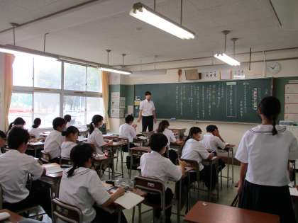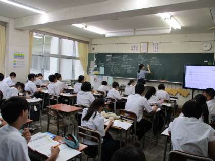 1年生の授業の様子を紹介します。 【写真上:国語】 【写真中:数学】 【写真下:保健体育】