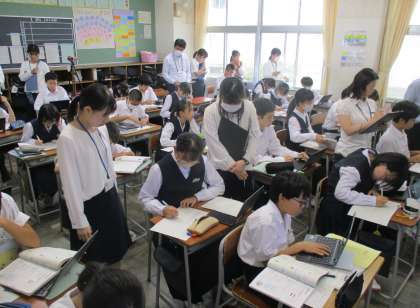 3日(火)研究授業の様子【1学年】 公開日 2023/10/03 更新日 2023/10/03 1学年 本日5限、授業研究で訪れた他校の先生方が参観する中、1年2組の生徒たちは集中して数学の学習課題に取り組みました。