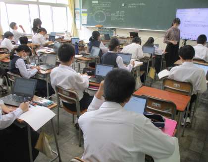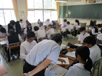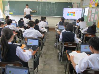 1年生の授業の様子を紹介します。 【写真上:国語】 【写真中:数学】 【写真下:理科】