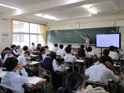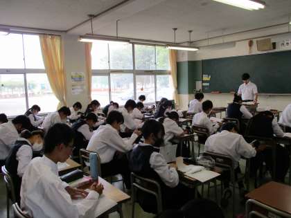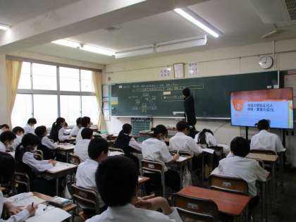 1年生の授業の様子を紹介します。 【写真上:国語】 【写真中:数学】 【写真下:理科】