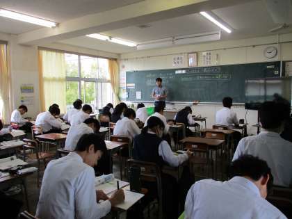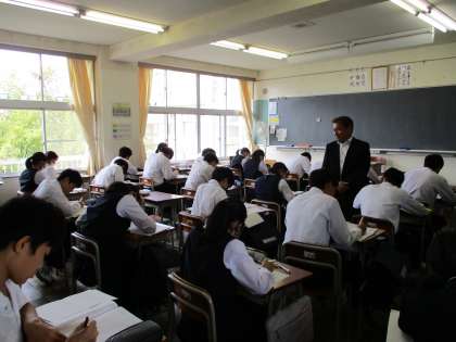 3年生の授業の様子を紹介します。 【写真上:保健体育】 【写真中:社会】 【写真下:理科】