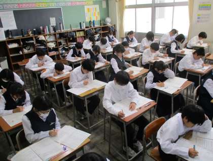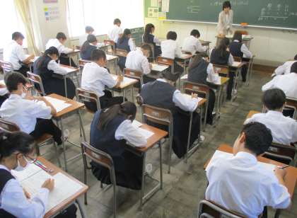 学習の成果を発揮できましたか? 【写真は、1年生の考査中の様子です。】