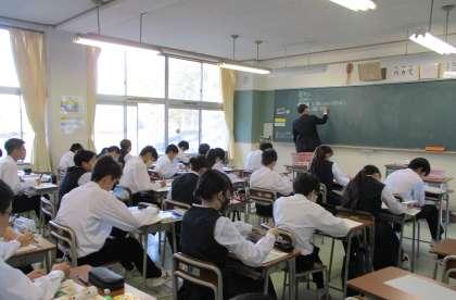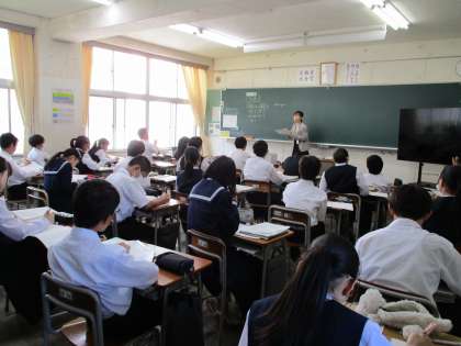 1年生の授業の様子を紹介します。 【写真上:社会】 【写真中:数学】 【写真下:保健体育】