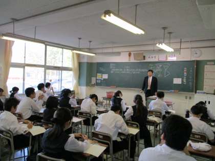 1年生の授業の様子を紹介します。 【写真上:社会】 【写真中:数学】 【写真下:保健体育】