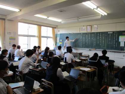 3年生の授業の様子を紹介します。 【写真上:国語】 【写真中:理科】 【写真下:数学】