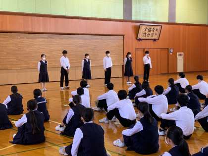 25日(水) 学年集会 【2学年】 公開日 2023/10/25 更新日 2023/10/25 2学年 本日5時間目に、後期学年生徒会の企画・運営による学年集会を行いました。 後期の学年生徒会の新たなメンバー紹介に続き、校外学習でのルールやマナーの確認、係別打ち合わせなどをしました。