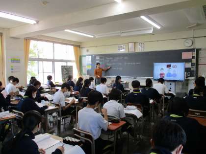 2年生の授業の様子を紹介します。 【写真上:数学】 【写真中:英語】 【写真下:英語】