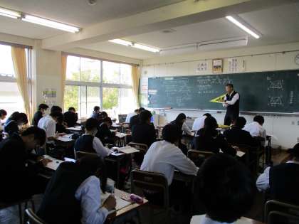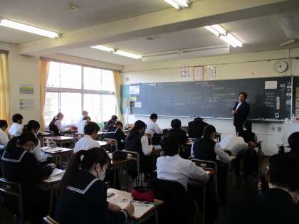 3年生の授業の様子を紹介します。 【写真上:美術】 【写真中:社会】 【写真下:数学】