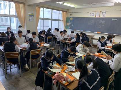 本日5限目の学活の時間に、金沢校外学習の事後学習として、個人新聞作成を行いました。