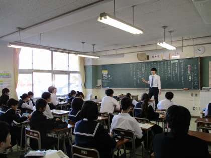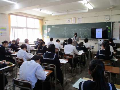 1年生の授業の様子を紹介します。 【写真上:国語】 【写真中:数学】 【写真下:保健体育】