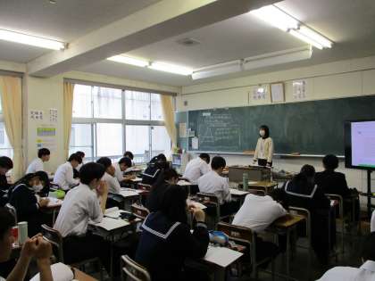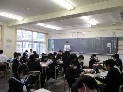 3年生の授業の様子を紹介します。 【写真上:数学】 【写真中:国語】 【写真下:保健体育】