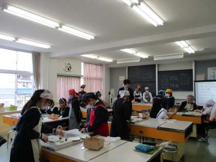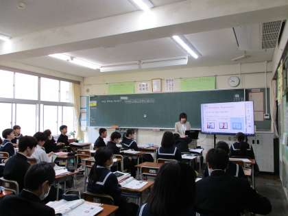 1年生の授業の様子を紹介します。 【写真上:家庭科】 【写真中:保健体育】 【写真下:英語】