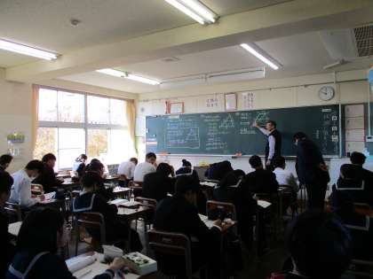 3年生の授業の様子を紹介します。 【写真上:美術】 【写真中:社会】 【写真下:数学】
