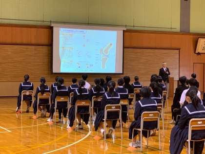 16日(木) 整形外科医による講話【2学年】 公開日 2023/11/16 更新日 2023/11/16 2学年 本日5限目に、整形外科医による講演会を行い、講師の北川先生から「スポーツ障害・外傷とその予防」について、お話していただきました。 講演会で学んだ知識や技術を、普段の保健体育の授業や部活動でも生かしていきましょう。