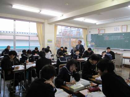 3年生の授業の様子を紹介します。 【写真上:理科】 【写真中:保健体育】 【写真下:社会】