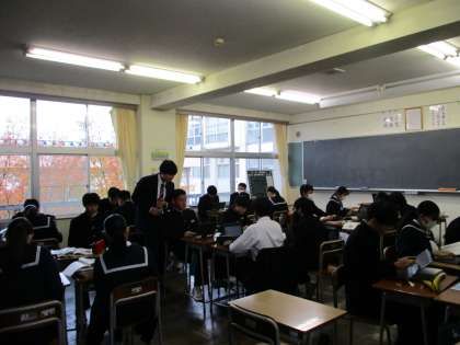 3年生の授業の様子を紹介します。 【写真上:理科】 【写真中:国語】 【写真下:英語】