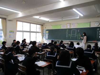 1年生の授業の様子を紹介します。 【写真上:社会】 【写真中:保健体育】 【写真下:国語】