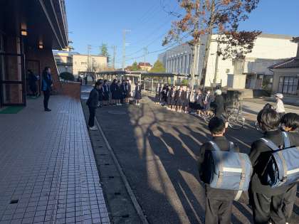 天気がよく、久しぶりに生徒玄関前でのあいさつ運動となりました。