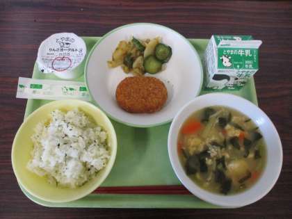 富山県食育推進月間「学校給食とやまの日」の第2弾として、今日も富山でとれた食材をたくさん取り入れた献立でした。中でもコロッケについてですが、皆さんは富山県が全国トップ3に入るほどのコロッケ消費県だと知っていましたか?