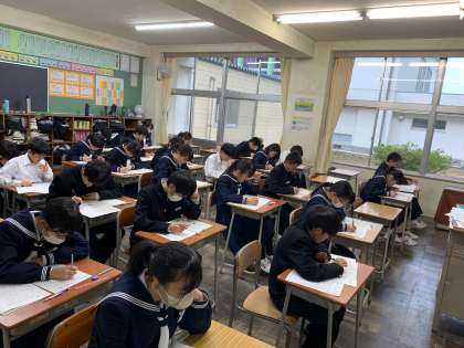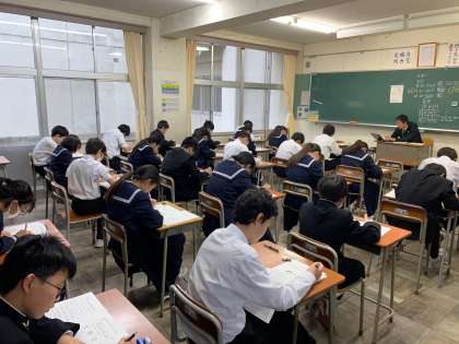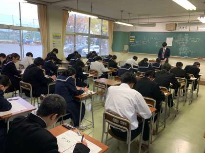 本日より2学期の期末考査が始まりました。 写真は1年生の様子です。