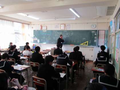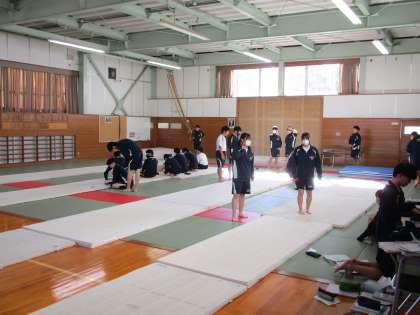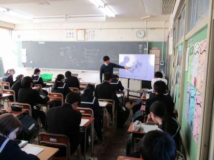 3年生の授業の様子を紹介します。 【写真上:保健体育】 【写真中:理科】 【写真下:数学】