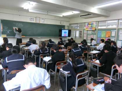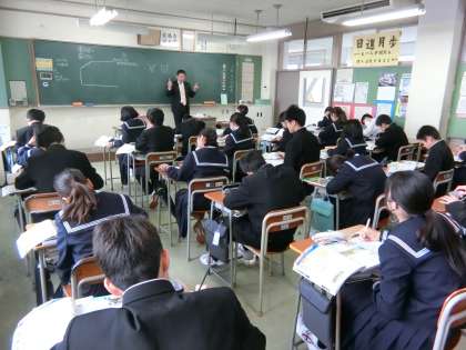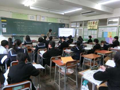 1年生の授業の様子を紹介します。 【写真上:社会】 【写真中:数学】 【写真下:英語】