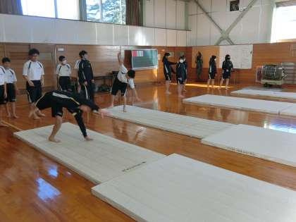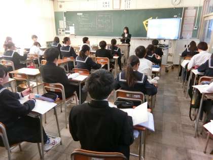 1年生の授業の様子を紹介します。 【写真上:保健体育】 【写真中:数学】 【写真下:国語(書写)】