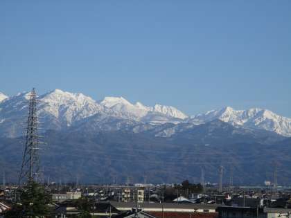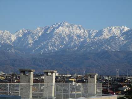 見事に晴れ渡った今日の日中、美しく雄大な立山連峰の姿を見ることができました。
